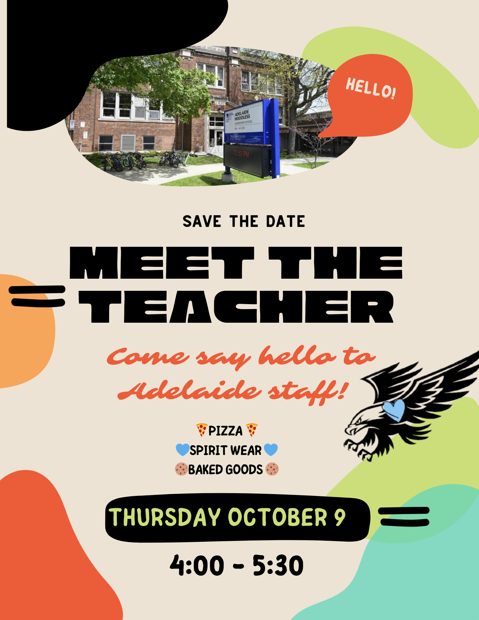 Meet the Teacher – Oct 9 4pm-5:30pm