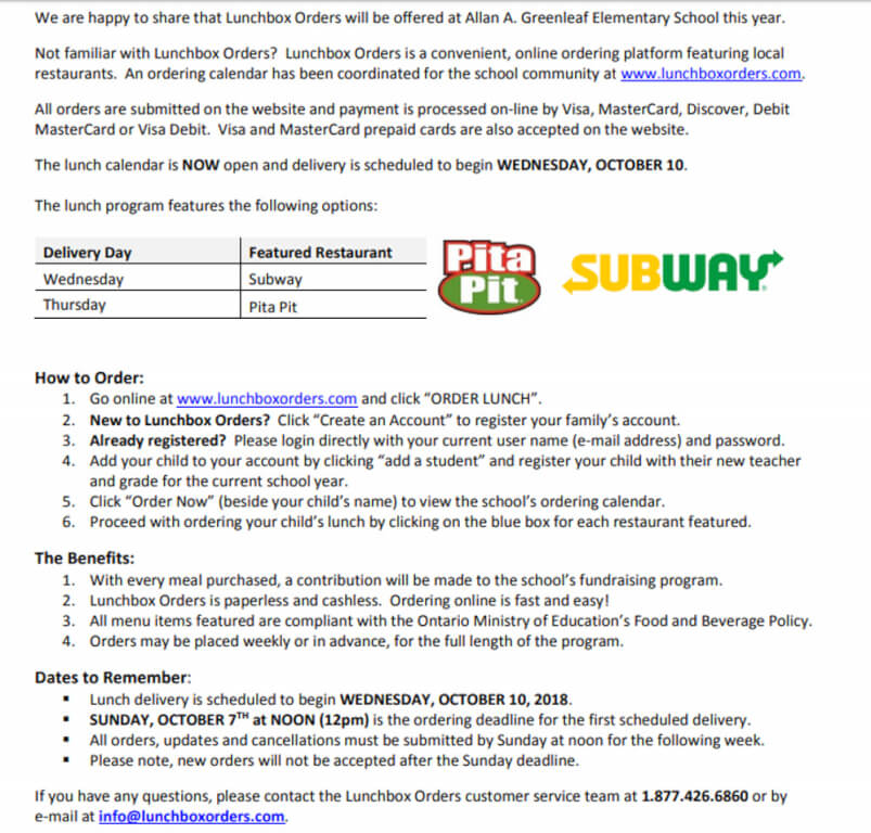 Place your Lunchbox Order!