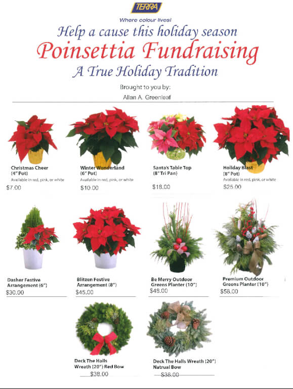 Please come and pick up your pre-ordered poinsettias from the office.  After school till 6 p.m.