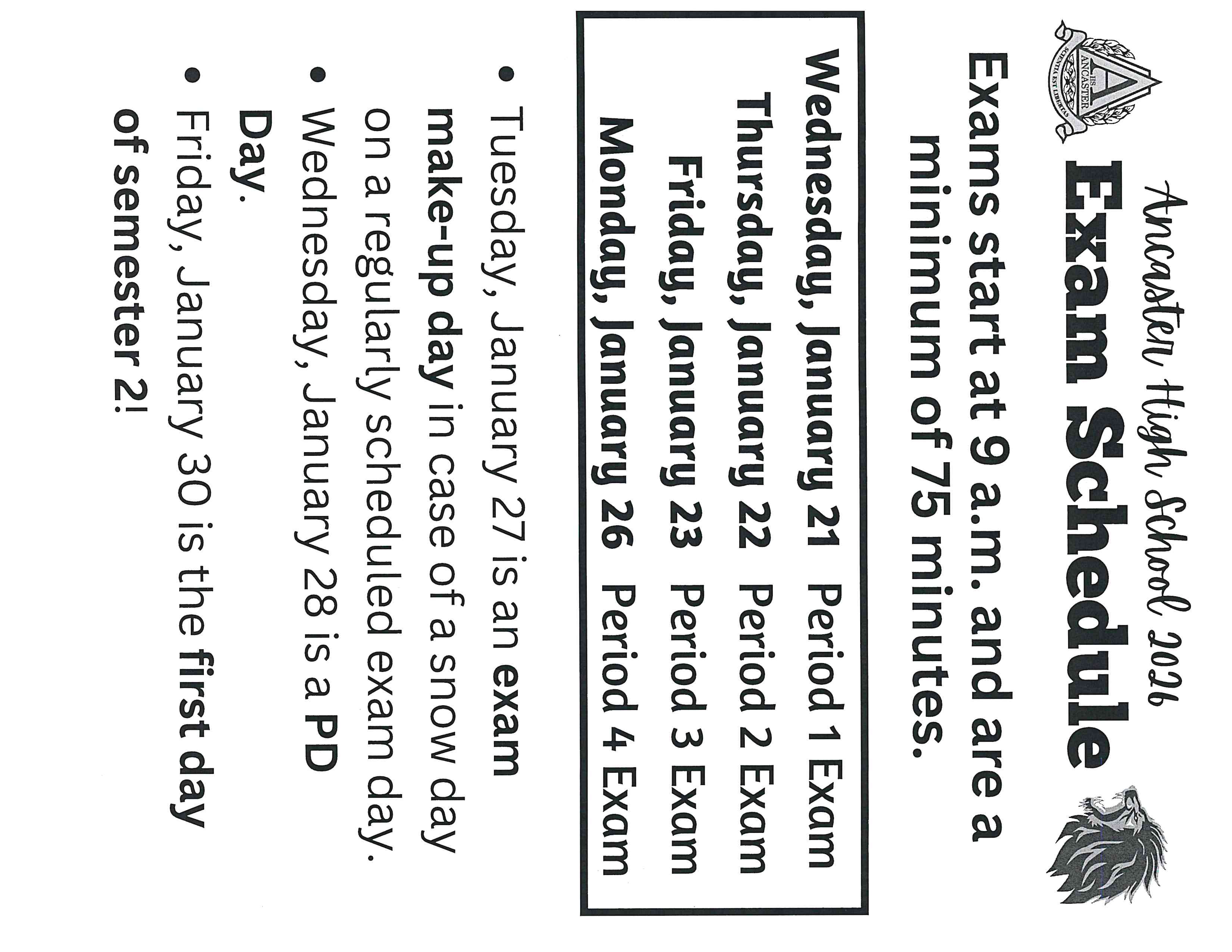 Exam Schedule January 2026