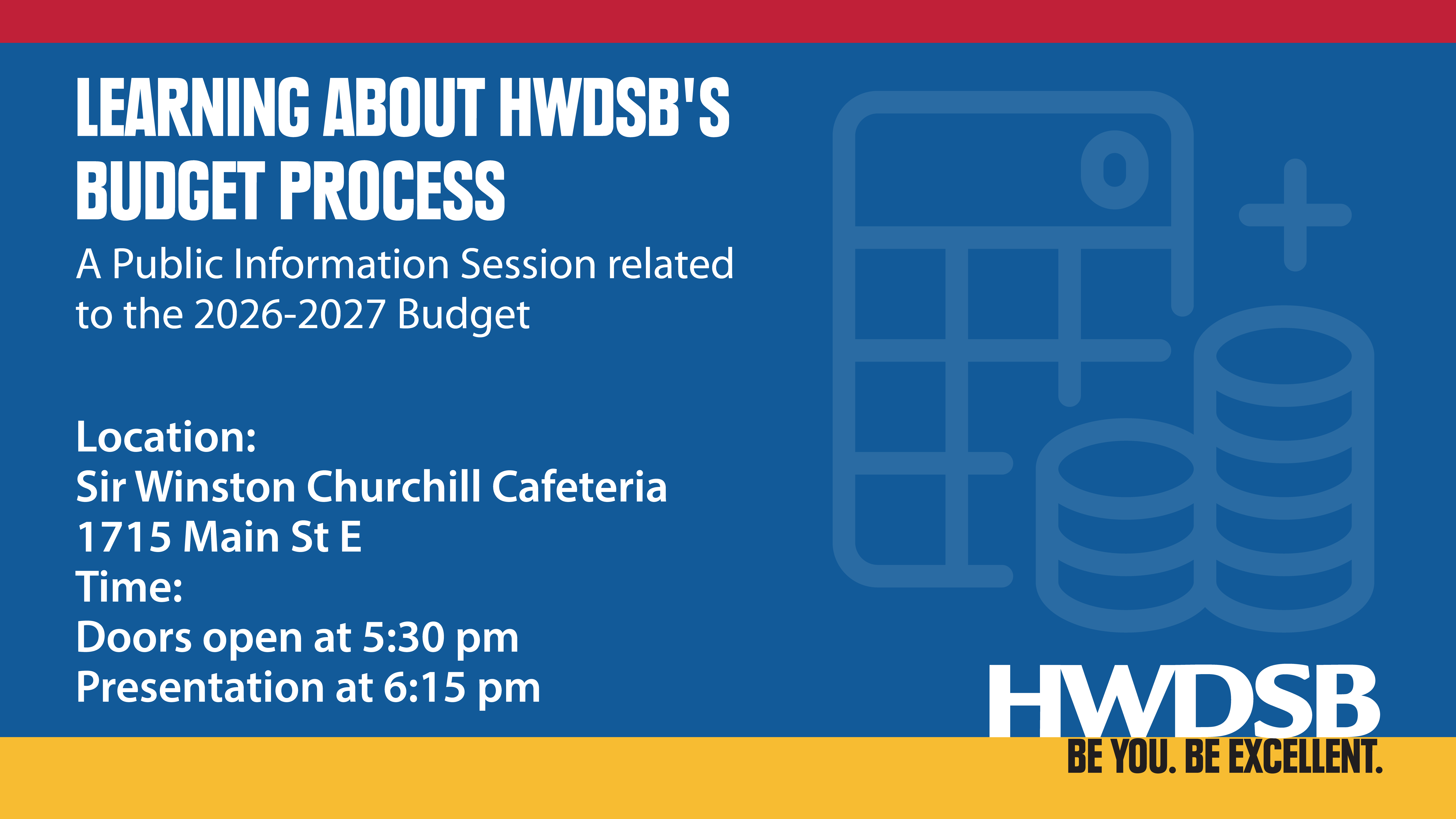 HWDSB is currently embarking on the 2026-2027 budget process and we want to hear from you! We will be hosting a public information session on Wednesday March 4th at 6:15pm.