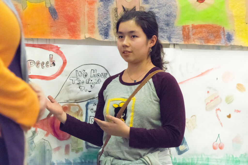 Enjoy some photos from this hands-on learning day for grades 7 and 8 students interested in the arts. At the Hamilton Conservatory for the Arts, students worked with professional artists to explore the Hamilton Children’s Charter of Rights using four art forms (dance, drama, music and visual arts). This is part of a series of outings that connect elementary students to schools with Specialist High Skills Majors in Arts and Culture. Elementary schools involved at this session were Lake Avenue, Sir Wilfrid Laurier and W.H. Ballard. Photos by Harold Sikkema, HCA.