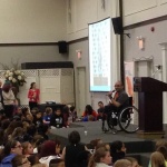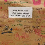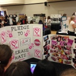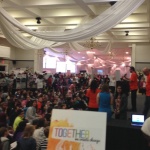 The day also supported the Board commitment to the David Suzuki Foundation’s Bluedot campaign with a live waste audit on site, aiming to make Together a litterless event. Students also shared their messages of commitment through other words or images by creating buttons to affix to a large circular design Bluedot hung on the wall. The day also saw student storefronts, speakers corner, a blogging café, spoken word performances, lots of social media and keynote speaker Spencer West from Me to We.