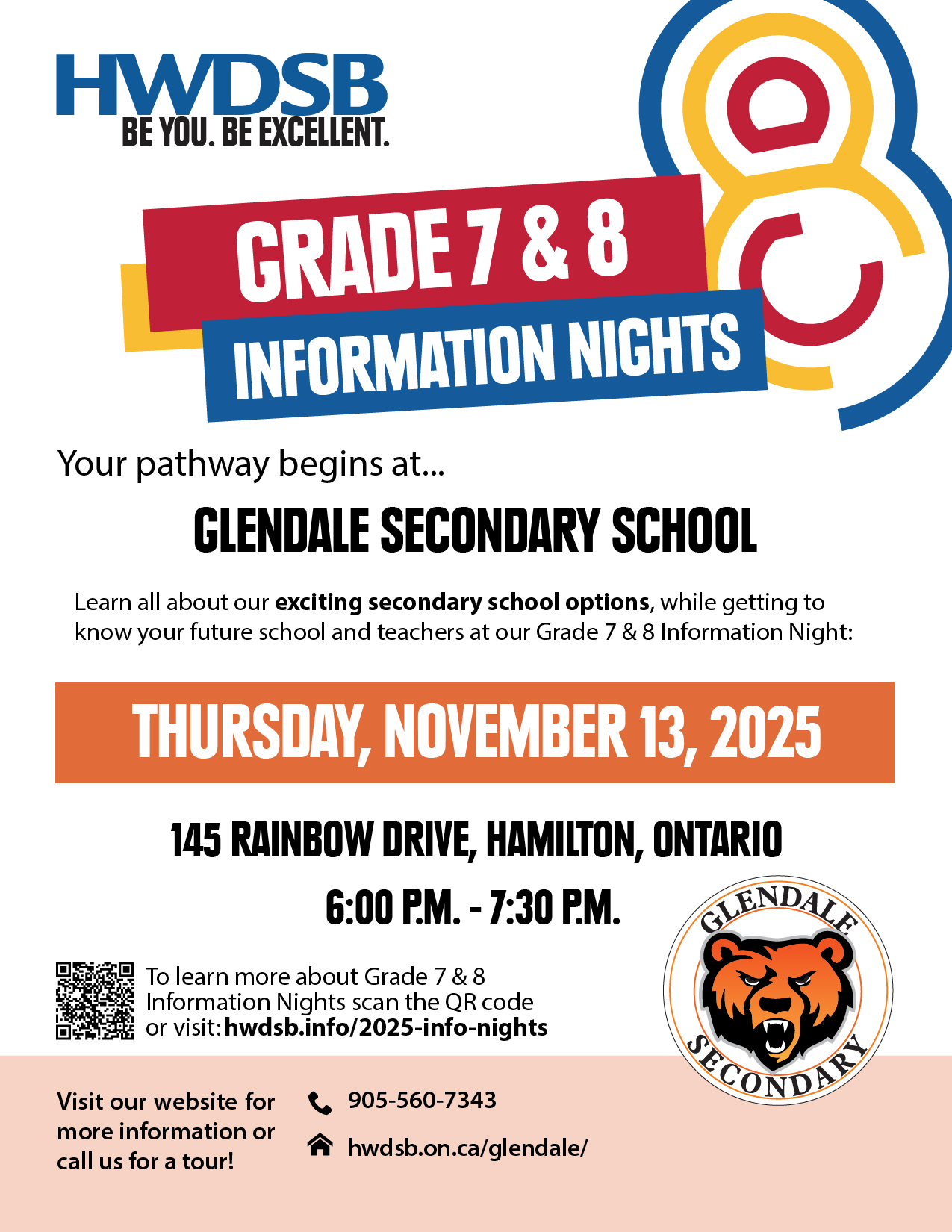 JOIN US ON THURSDAY, NOVEMBER 13 at 6 pm in the auditorium for GRADE 7&8 INFORMATION NIGHT!