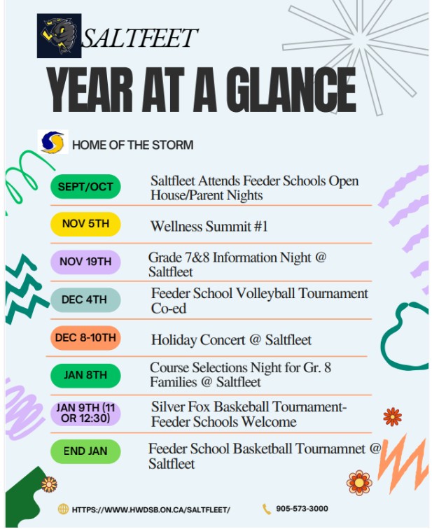 Saltfleet = Grade 8 events  – Year at a Glance!  SALTFLEET Year at a Glance