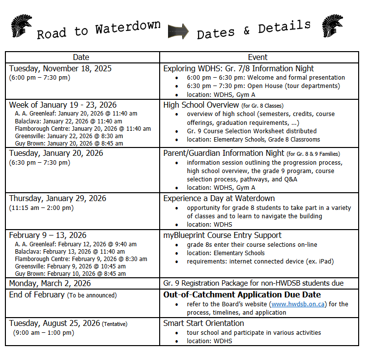 3. Experience a Day at WDHS for Grade 8 Students: January 29, 2026