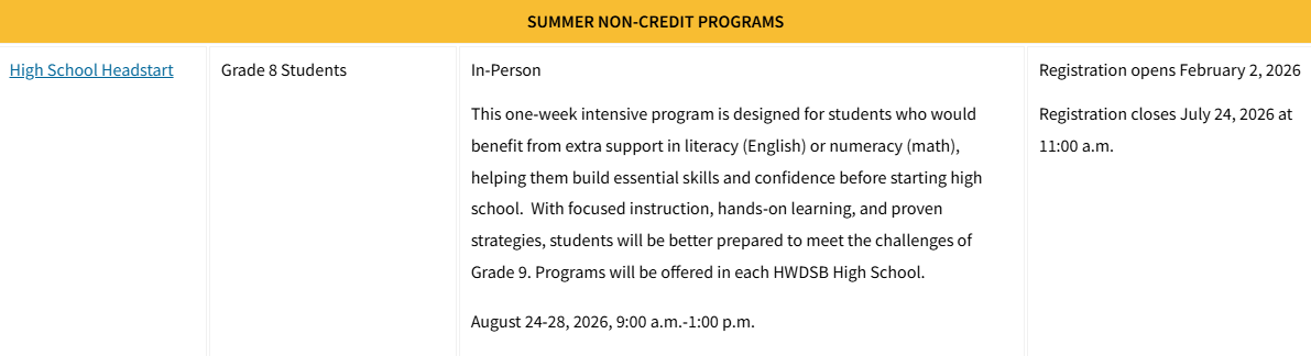 Click ‘here’ to explore the exciting summer options for students completing Grade 8 in June 2026!
