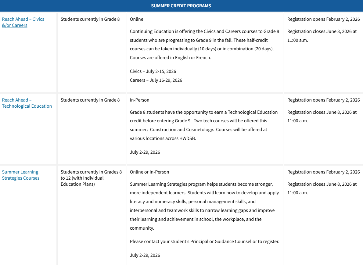 Registration and course selection Information for current HWDSB students for the 2026-2027 school year.